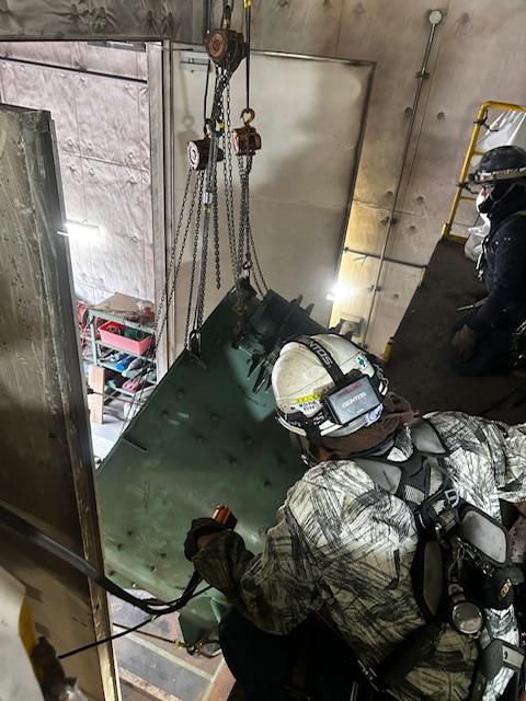 ホイストで搬出!